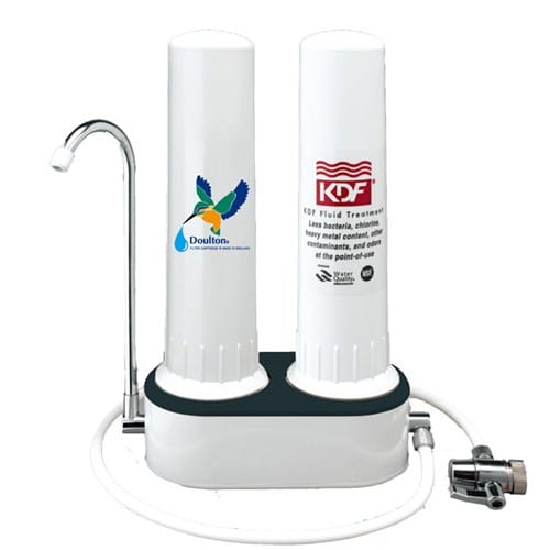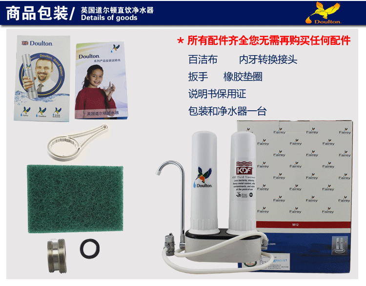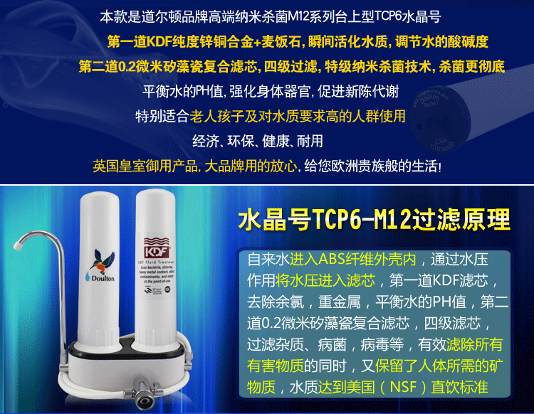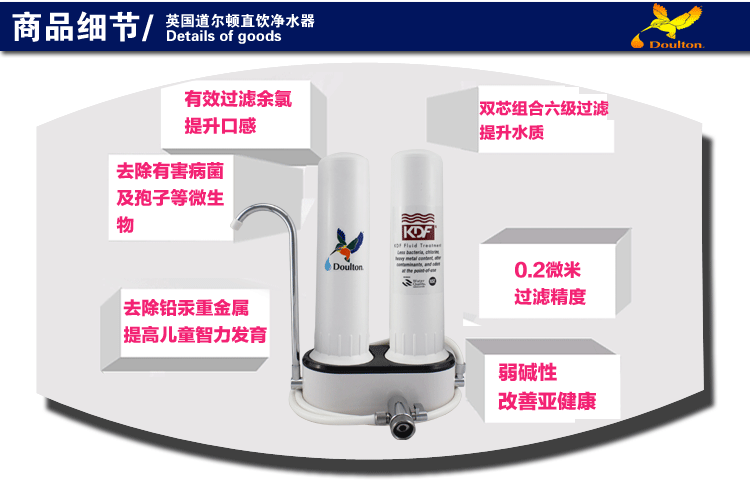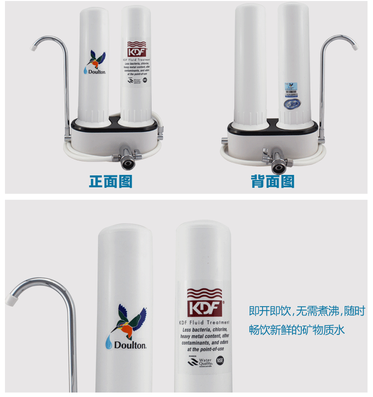 1、PP塑胶双筒机身双芯台上式组合,6级过滤效果,安全无忧 ;