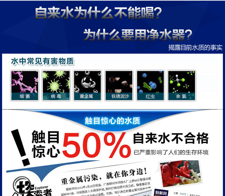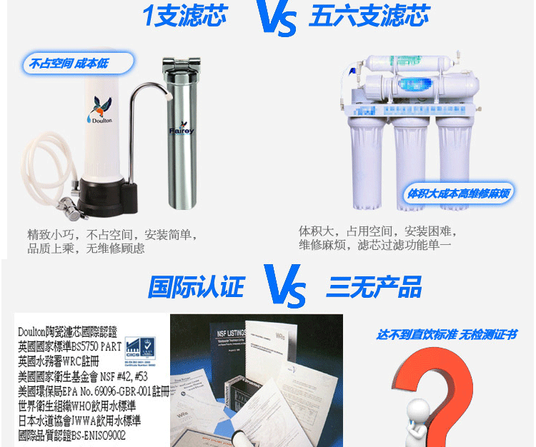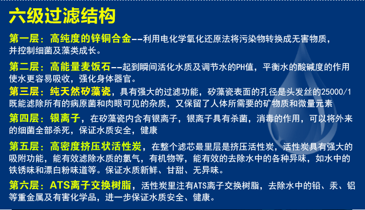6、过滤有害物质的同时又保留人体所需矿物质,水质通过NSF等国际权威机构认证。