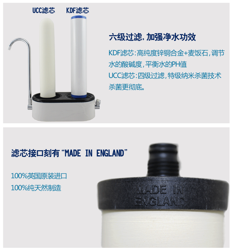 3、搭配KDF高纯度锌铜合金滤芯,具有去除重金属与酸根离子、活化水质,促进吸收作用;