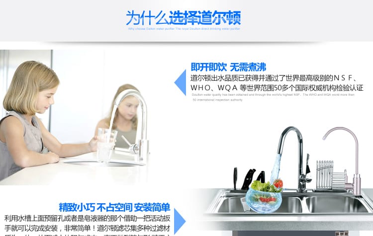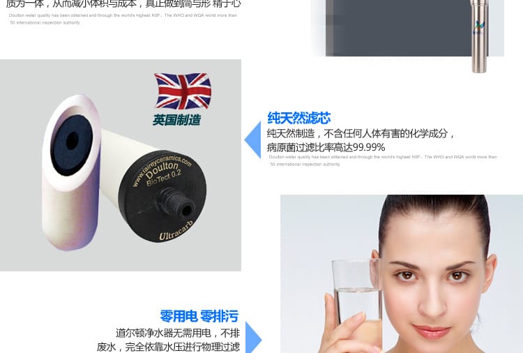 5、过滤有害物质的同时又保留人体所需矿物质,水质通过NSF等国际权威机构认证。