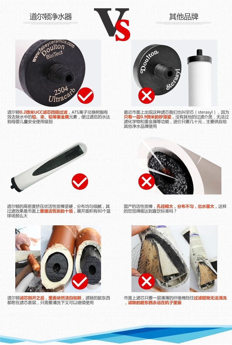 道尔顿采用最先进挤压装活性碳,能有效隔除水中有害的化学品,例如氯气,杀虫剂及农药,有机性物质,石棉纤维,滤除异味,异色及三卤甲烷等致癌物。