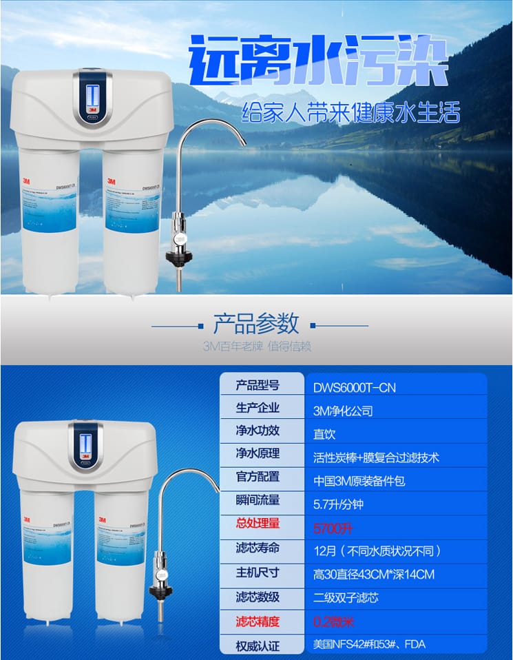 3M净水器 家用直饮 3M DWS6000T-CN双子净智净水系统