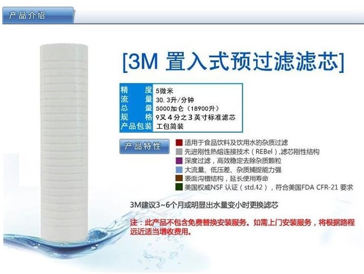 3M净水器前置滤芯 3M POLYKLEAN滤芯