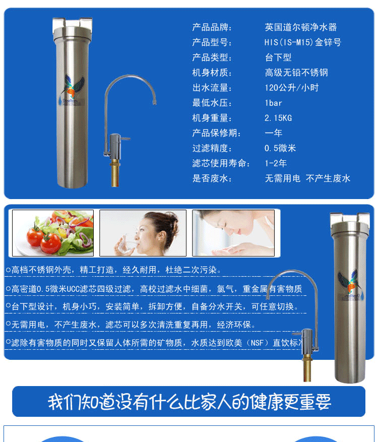 道尔顿HIS (IS-M15)飞力净水器 金锌号台下型净水机