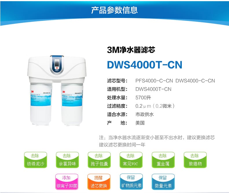 3M DWS4000T-CN双子净智净水系统替换滤芯组合