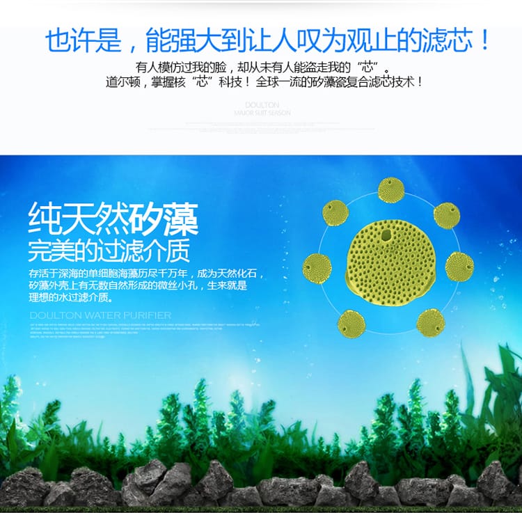 采用百分百天然矽藻,矽藻瓷质粒子非常微细,粒子之间的隙缝更是狭小,凝固后内部形成庞大的"微孔网路",因此能有效的阻止体积较孔道大的微粒通过,绝对隔除病原菌及有害物质。