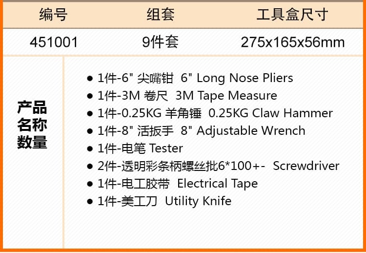 EVERPOWER/艾威博尔4510019件套家用组套工具9件套(单位:套)