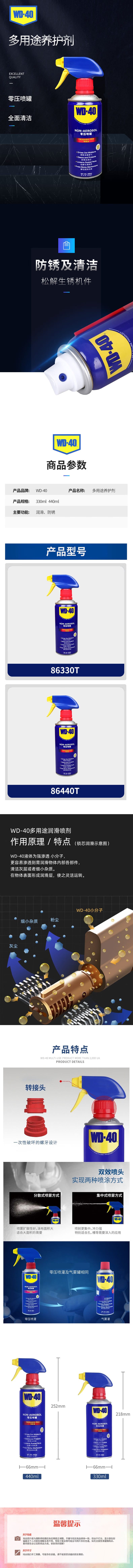 WD-40 多用途金属零件防锈养护剂 零压喷罐 86330T 330mL 24瓶/箱