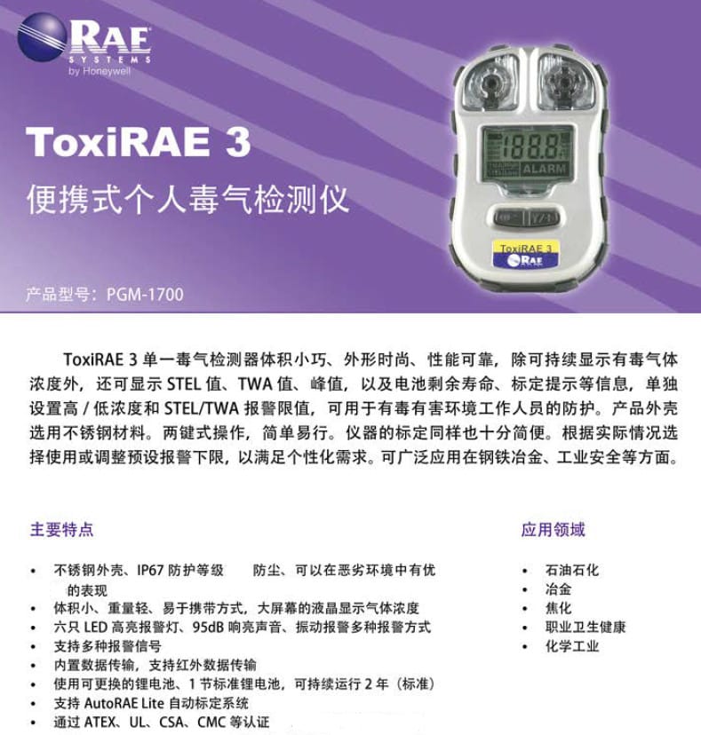 HONEYWELL霍尼韦尔硫化氢气体检测仪PGM1700-H2S便携式臭气报警器ToxiRAE3