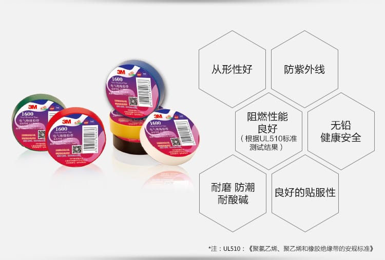 3M电工胶通用型电气绝缘胶带耐磨阻燃电老虎无铅PVC电工胶布1712