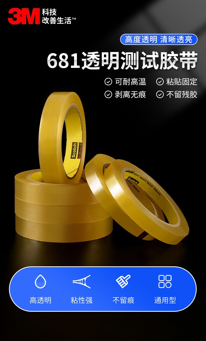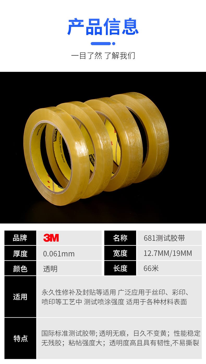 3M 681测试胶带油墨附着力测试胶带透明薄膜喷涂强度百格测试胶带