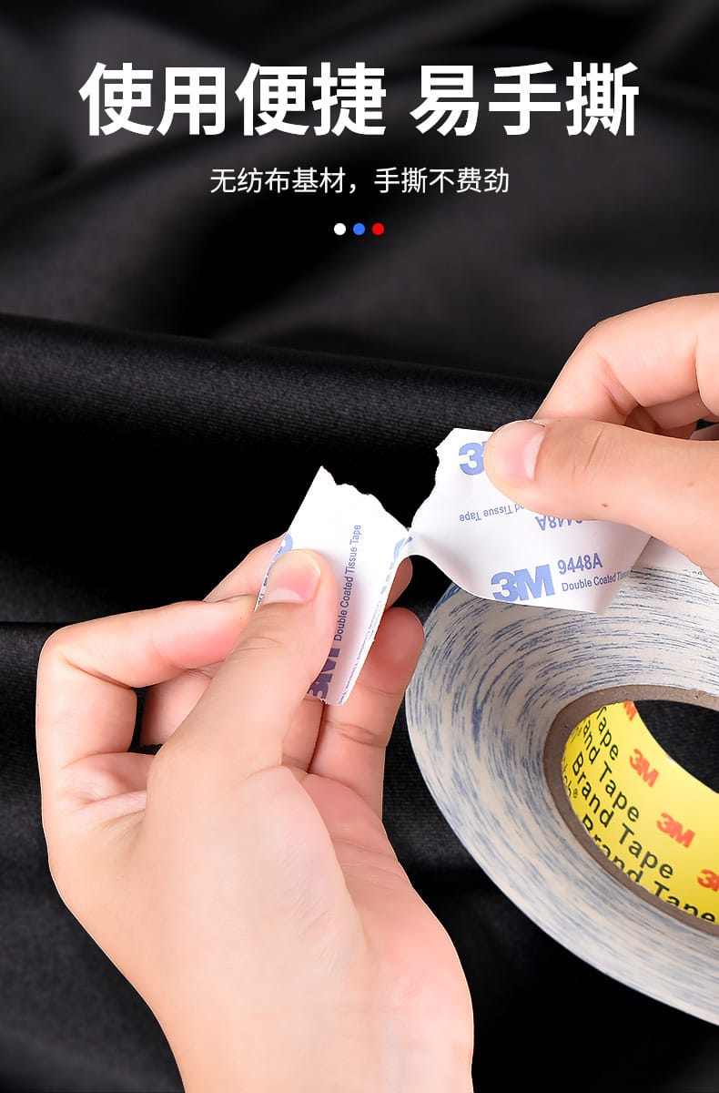 3M9448A棉纸双面胶高粘无痕超薄模切冲型易撕强力无纺布双面胶带