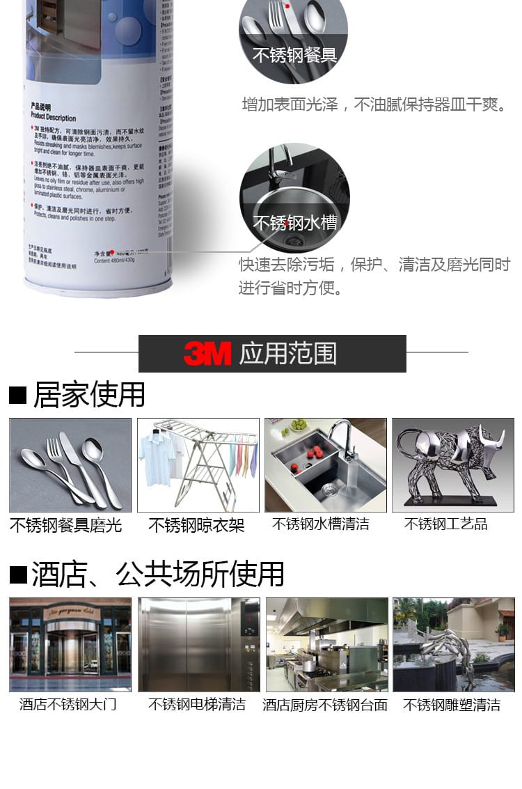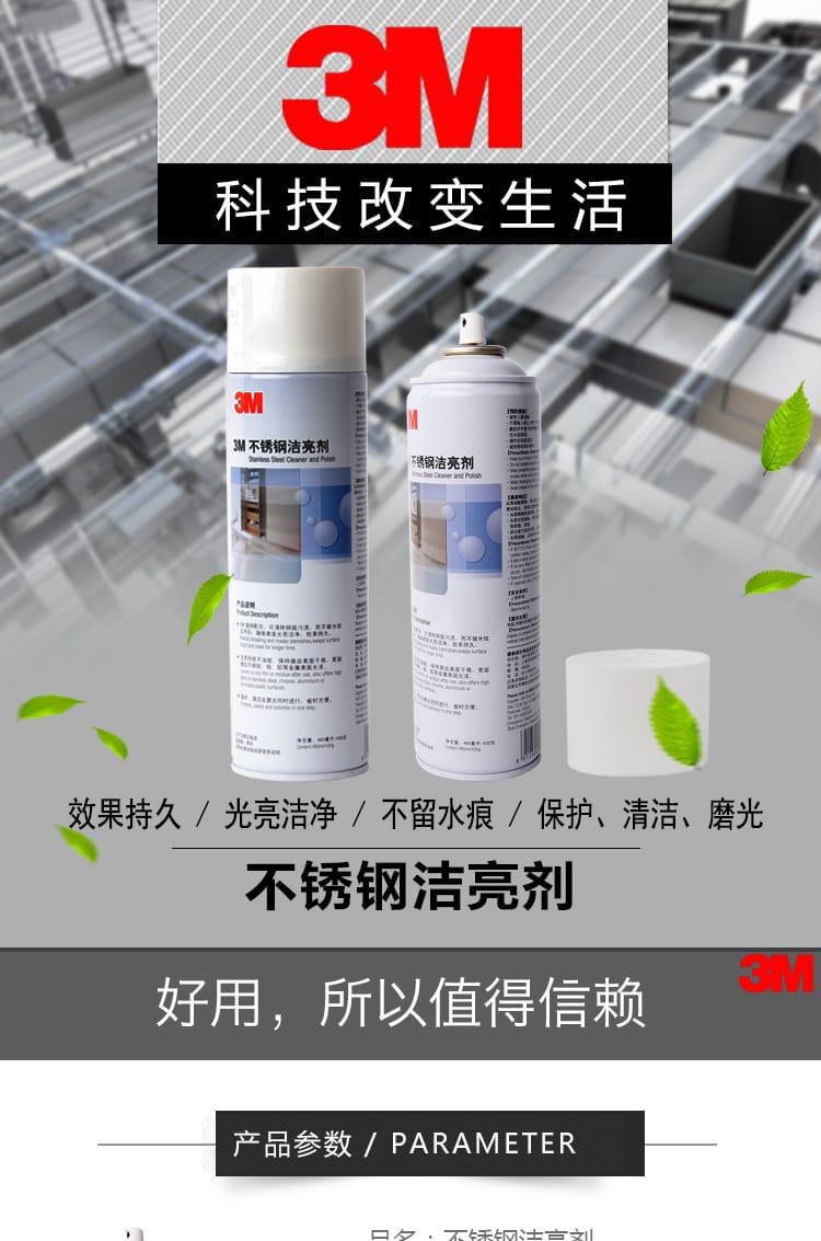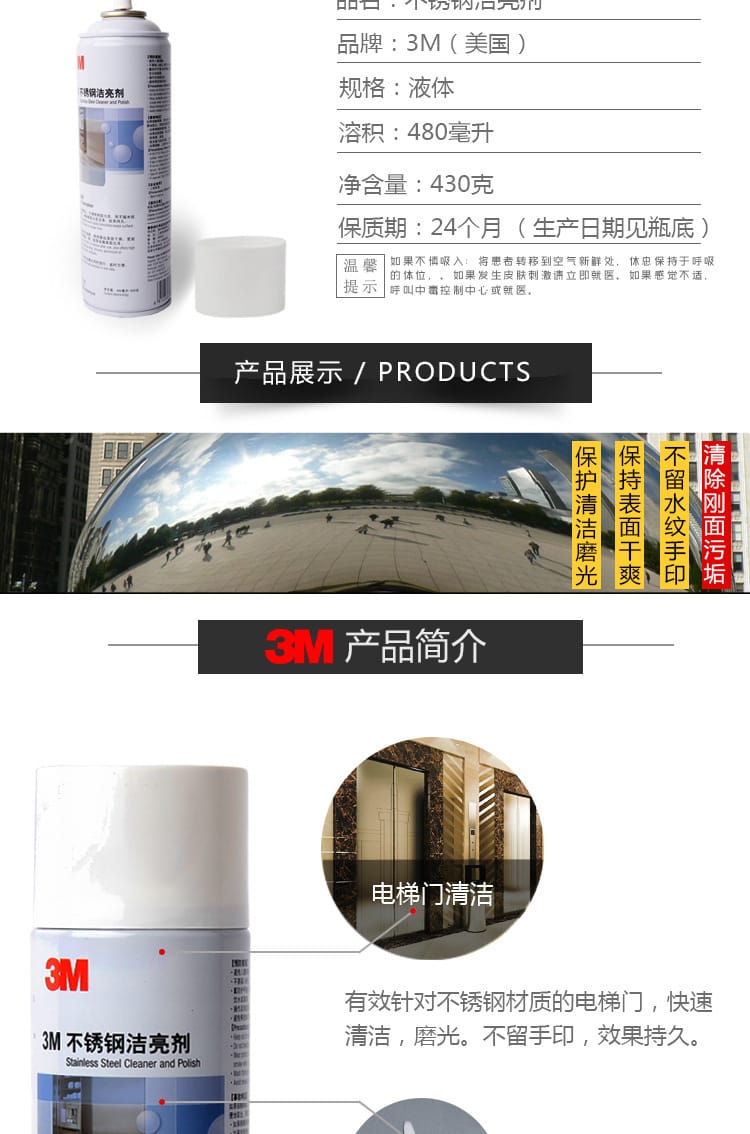 美国正品3M不锈钢洁亮剂480ml 清洁磨光去污剂表面光亮剂 12瓶/箱